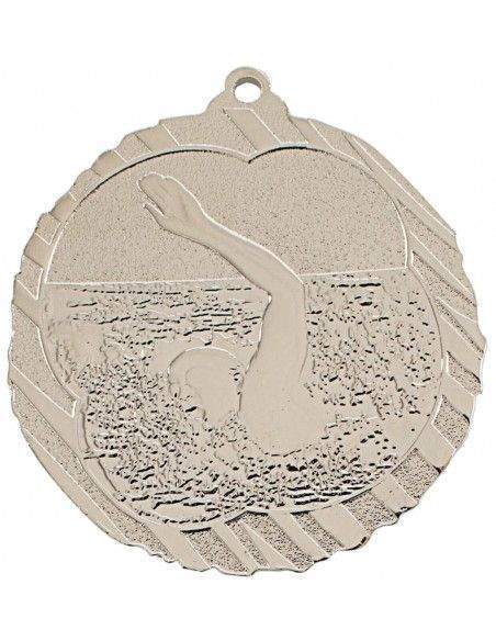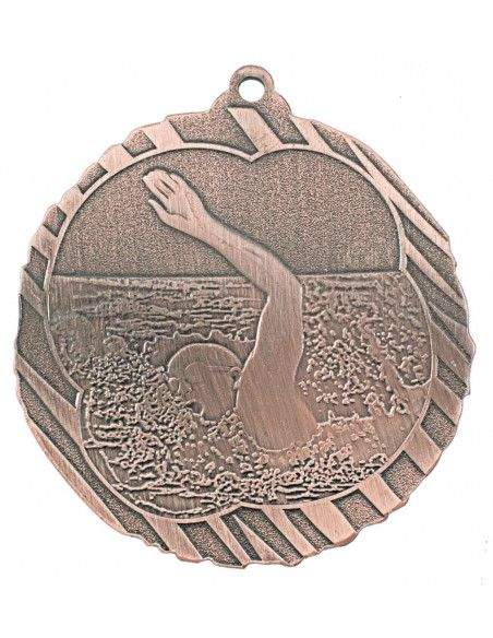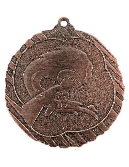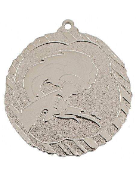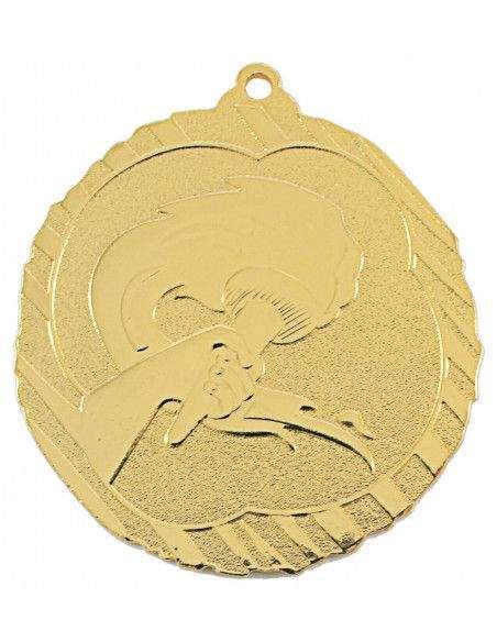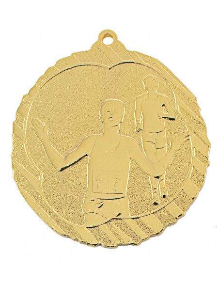 Medalla de metal con diseño de diferentes deportes: Fútbol, Natación, Atletismo y Olímpica. Tres acabados disponibles: Oro, Plata y Bronce. El precio del artículo incluye la cinta de 1 cm a elegir y la grabación en láser por la parte posterior de la medalla. Cantidad mínima 25 unidades.