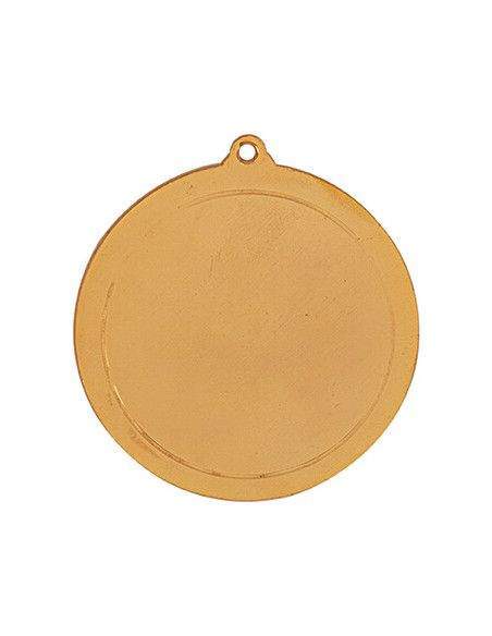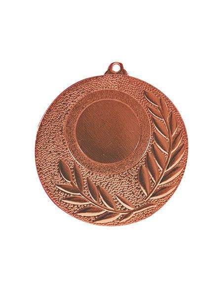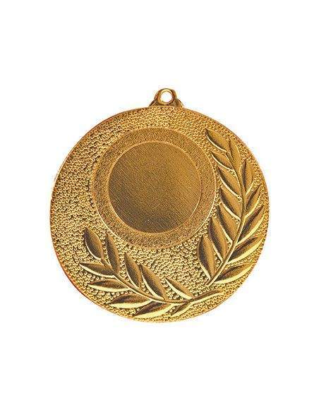 Medalla deportiva alegórica fabricada en metal con terminación en color oro, plata o bronce. Ranura para colgar cinta. Diseño de ramas de laurel con circulo. El precio incluye la cinta de 1 cm a elegir y la grabación en la parte posterior mediante láser. Pedido mínimo 25 unidades.