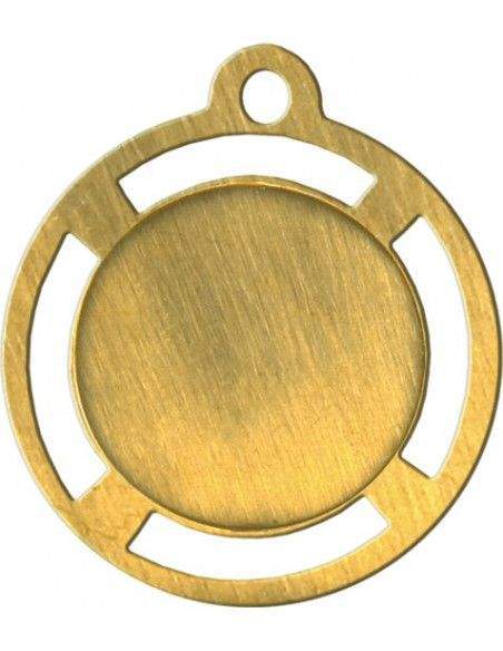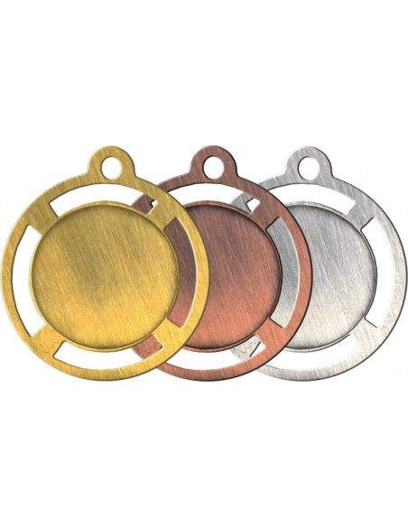 Medalla troquelada fabricada en metal con diseño troquelado y ranura para cinta de colgar. Disponible en tres colores diferentes: Oro, Plata y Bronce. El precio incluye cinta a elegir y grabación de inscripción en láser. Cantidad mínima 25 unidades.