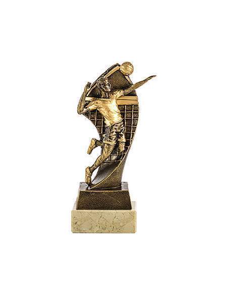 Trofeo para voleibol fabricado en resina envejecida en color dorado. Diseño con jugador en posición de saque. Disponibilidad de tres tamaños diferentes para 1º, 2º y 3º clasificado.
